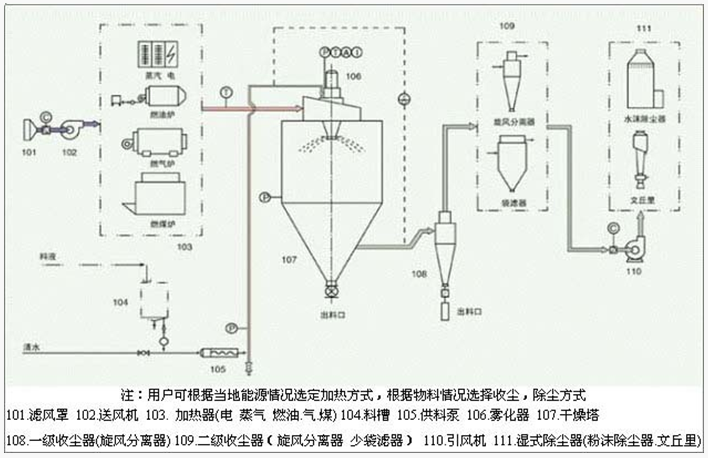 1、熱氣流與霧滴的接觸:有足夠量的熱氣流進入噴霧干燥室時,必須考慮熱氣流的方向及角度,無論是并流、逆流還是混流,確保與霧滴的充分接觸,才能進行充分的熱交換。